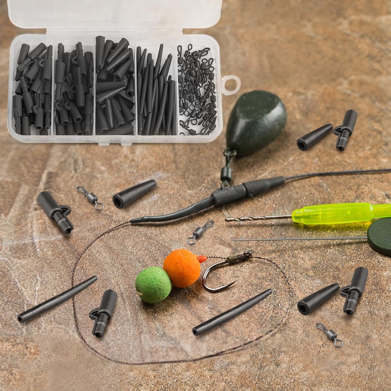 - 120 accessories for 4 types of carp fishing: the set contains four different types of accessories, a total of 120 pieces, with 40 pieces lead clips, 40 pieces anti-tangle sleeves, 40 pieces tail rubbers and 40 pieces change swivels with box.