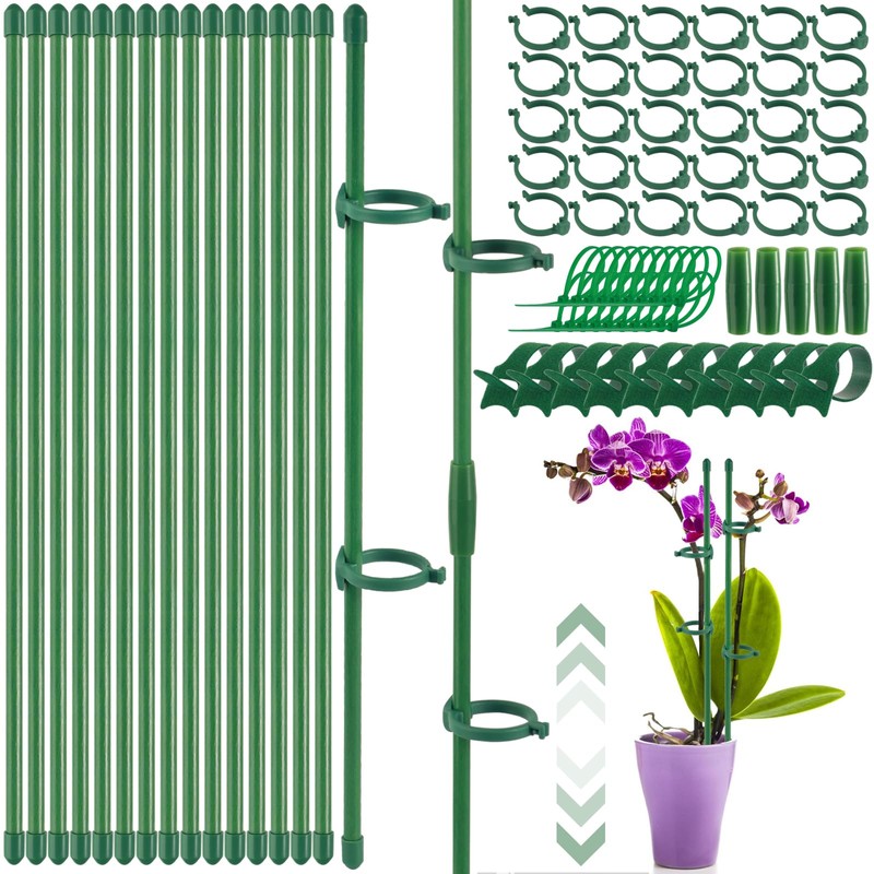 - 【Orchid plant support set】Monstera trellis includes 15 pieces 30 cm green orchid sticks, 30 pieces plant clips, 20 pieces self-locking nylon ties, 10 pieces plant ties, 5 pieces straight connecting tube. This is a great set for orchid growers! The plant rod and clips hold the orchid stems perfectly to support the flowers.