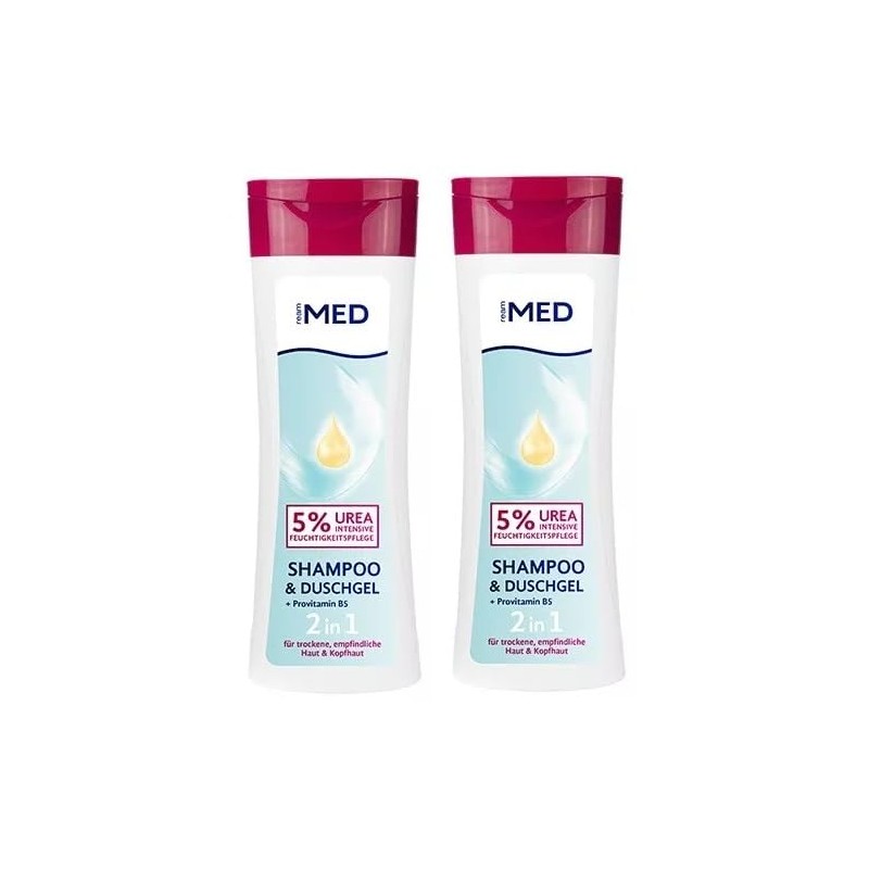 - Ream Med Pack of 2: two bottles of intensive moisturising with 5% urea + provitamin B5 2-in-1 shower gel and shampoo, 2 x 300 ml
