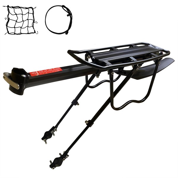 Rear Bike Rack 110 lbs Bicycle Cargo Rack with Fender, Reflective Logo and Cargo Net, Universal Adjustable Bike Rear Rack Easy to Install Quick Release Black