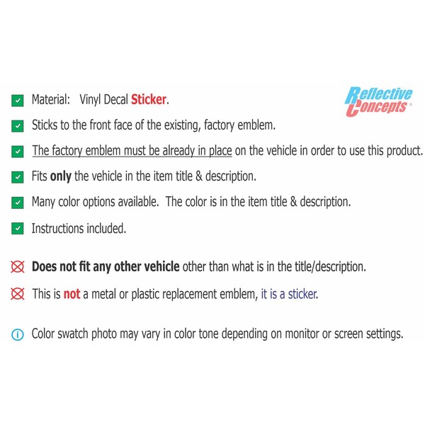 Note: This is a vinyl decal (sticker), not plastic or metal plating and not actual replacement emblems.