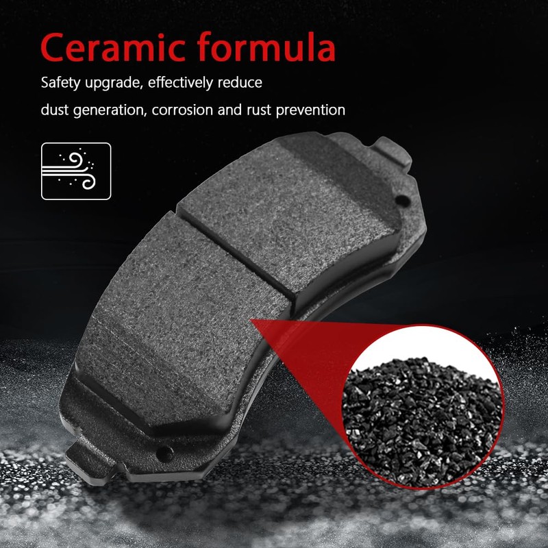 - Anti Rust Coated on surface protect rotors from rust and corrosion while looking good,maintain a longer running life;Brake pads made of ceramic material which provide better heat dissipation and virtually noise free braking,with the advantages of Quiet Braking, Low Dust Formula, Excellent Braking Performance;Brake pads and brake rotors fit well, LOW NOISE
