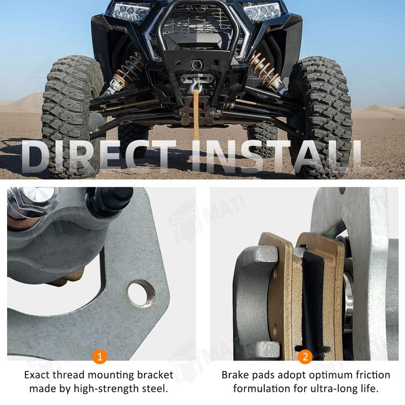 - Feature: Brake calipers assembly with brake pads, banjos, exact mounting bracket , direct install, user doesn't need adjustment