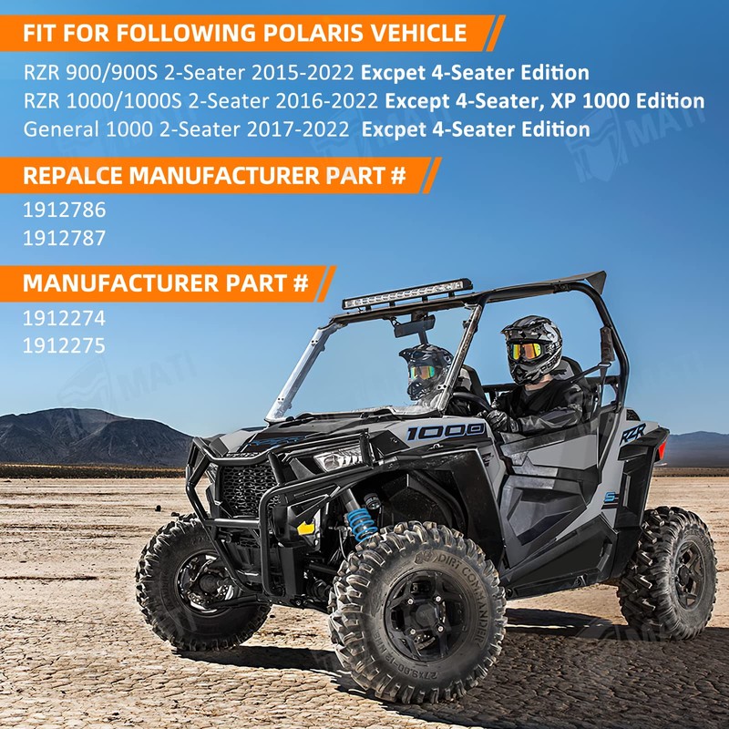 - Fitment: Fit for Polaris ▶ RZR 900/900S 2-Seater 2015-2022 Excpet 4-Seater Edition ▶ RZR 1000/1000S 2-Seater 2016-2022 Except 4-Seater, XP 1000 Edition ▶ General 1000 2-Seater 2017-2022 Excpet 4-Seater, XP 1000 Edition