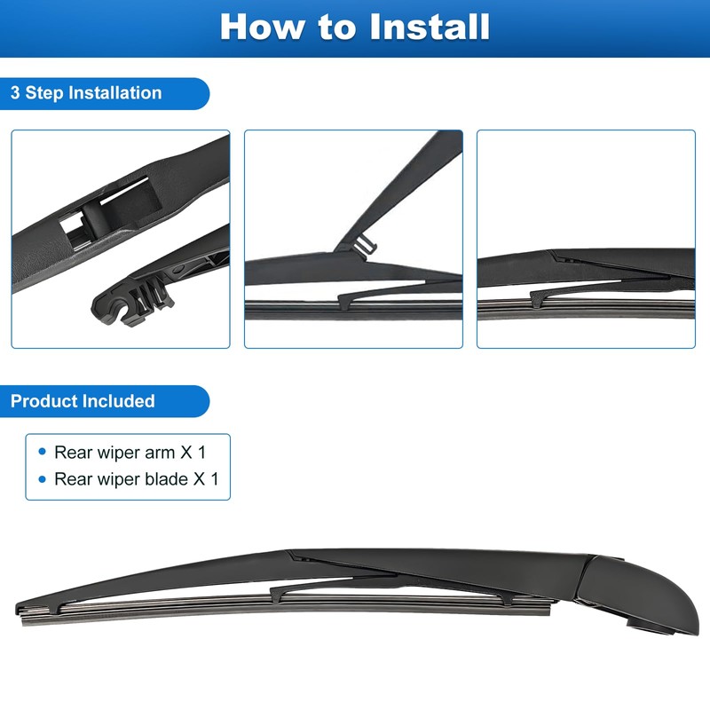 - ● Wiper Blade: 12"(310mm), Wiper Arm with Cover: 10"(250mm), perfectly sized for a proper fit
