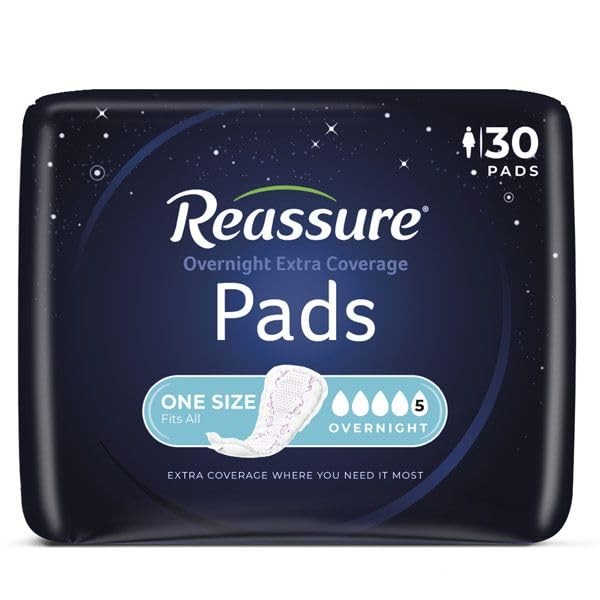 The Reassure Extra Coverage Pad, Overnight, keeps your skin feeling fresh and dry as the quilted Soft-Skin lining quickly channels away wetness, while Gel-Dry polymer locks it away preventing leaks and odor. Overnight Incontinence Pads are made with extra layers of absorbency, so that they help keep you dry through the night. Reassure helps you to Worry Less and Do More!