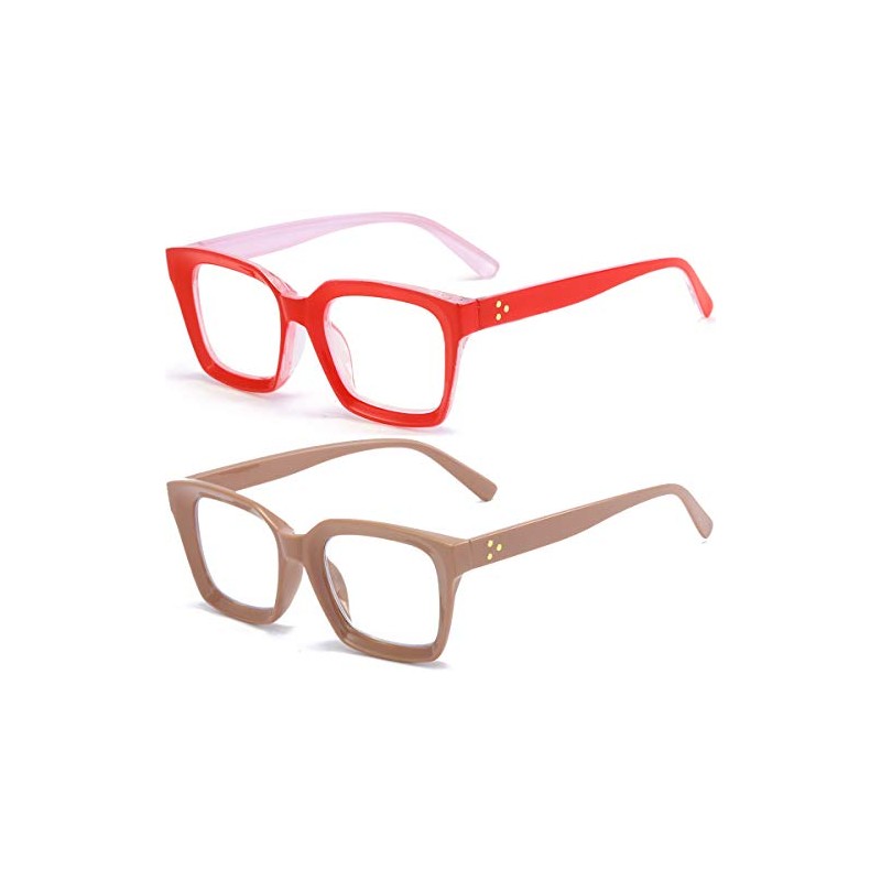 REAVEE 2 Pack Ladies Retro Oversized Reading Glasses Women Stylish Oprah Style Square Blue Light Blocking Computer Reader Eyeglass (Red/Coffee 2.0x)
