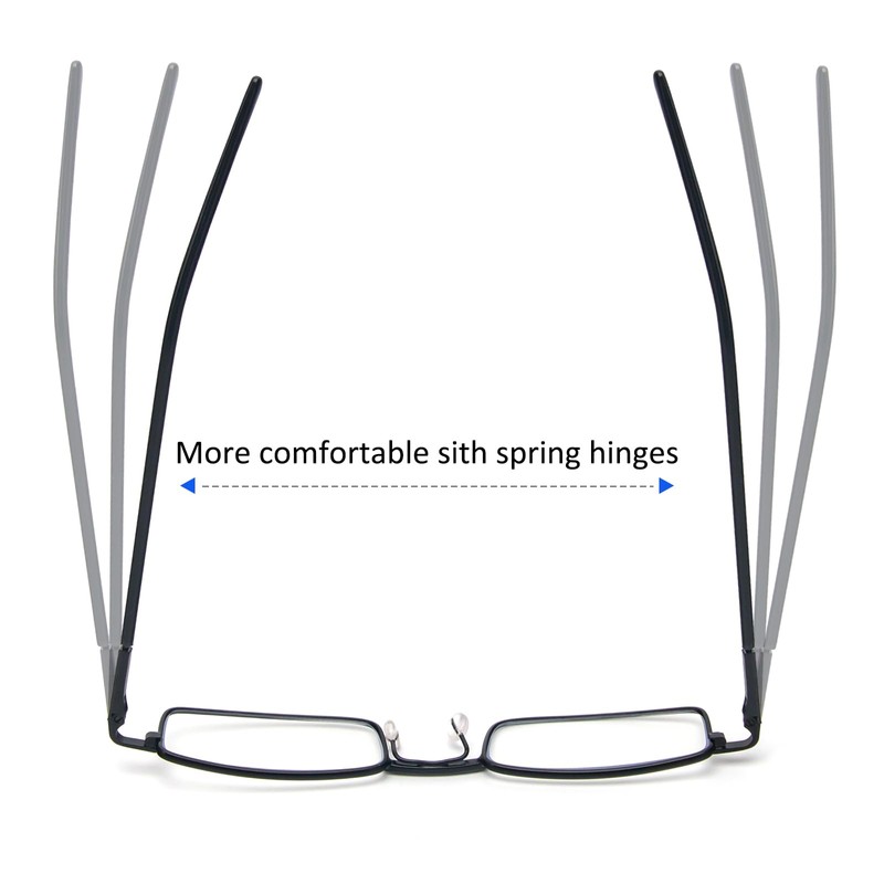 - 【Lightweight Metal Frame with Spring Hinge】The frame is made of high-quality metal material, which is lightweight and not easy to break. Sturdy spring hinges will not oppress your temples and nose. Narrow lenses allow you to read as well as observe your surroundings without having to constantly remove or put on the lenses.