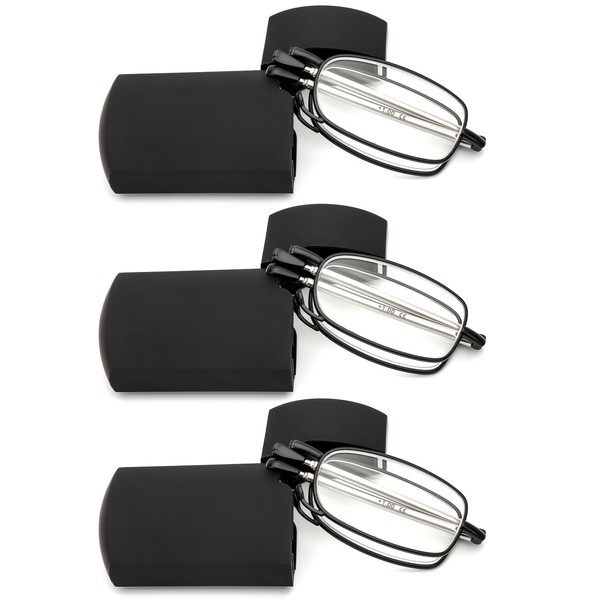 REAVEE 3 Pack Folding Reading Glasses for Men Women, Blue Light Blocking Computer Readers Spring Hinge with Small Compact Case, Black 2.5