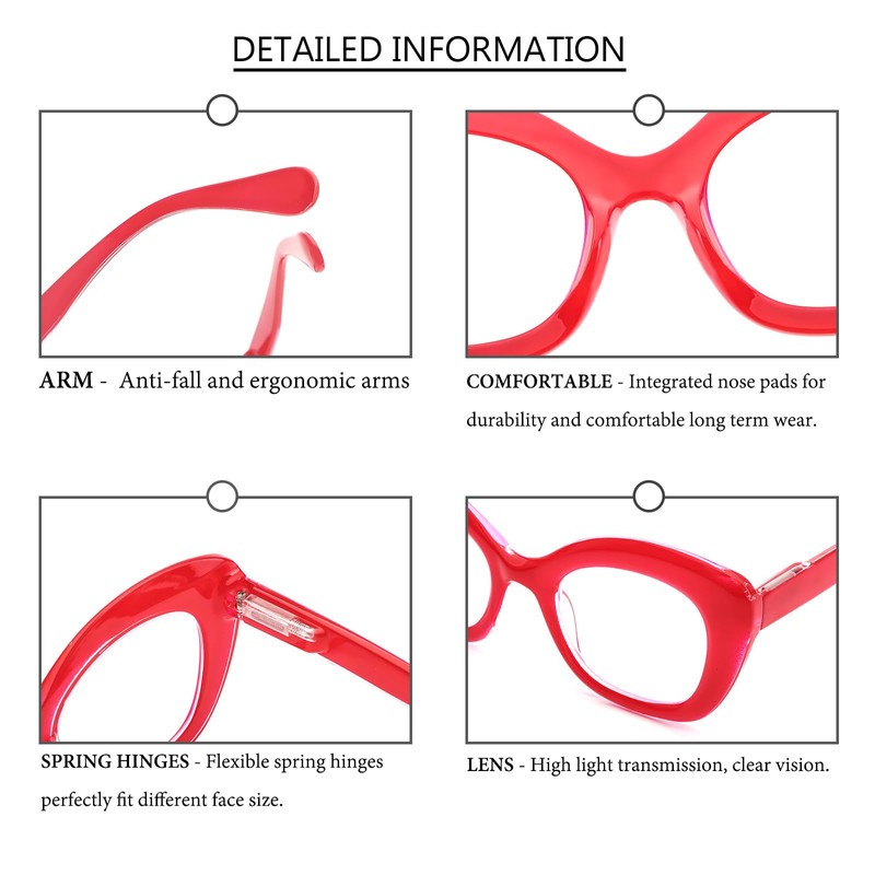 • Thick Frame Cateye Reading Glasses - The unique and lovely large frame cat eye design is fashionable and elegant. Wearing these chic cat-eye glasses will instantly enhance your face and keep you looking stylish.