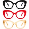 REAVEE 3 Pack Oversized Cat Eye Reading Glasses for Women Men Stylish Blue Light Blocking Lenses Black Red Yellow, 2.0