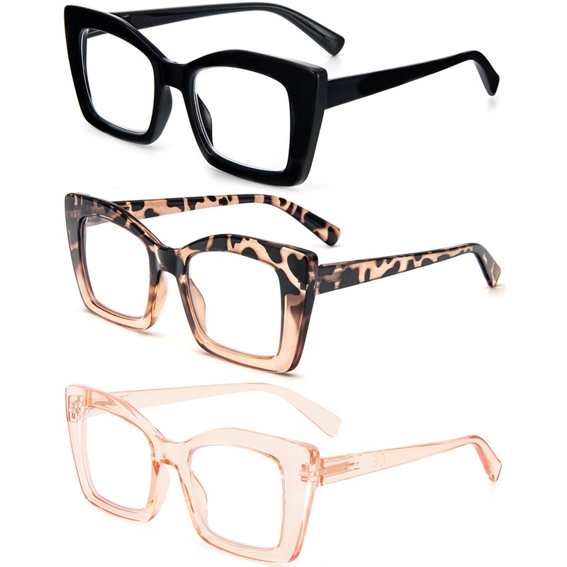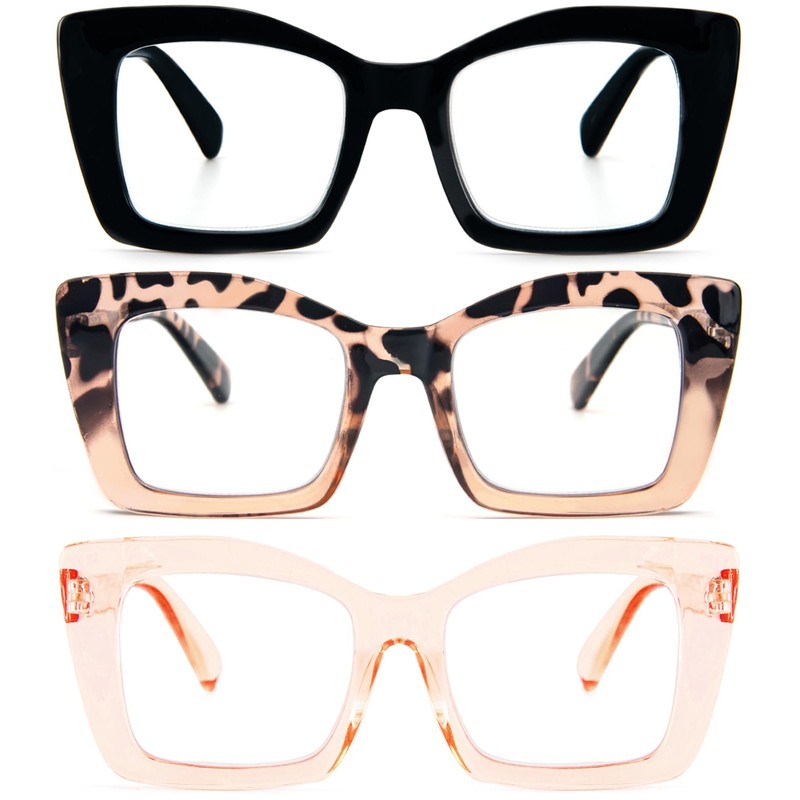- Lady's Stylish Oversized Reading Glasses: Beautifully crafted big frame cat eye shape reading glasses for people who loves fashion. The fashion design of the large and square rims is suitable for all face shapes.Whether you're walking down the street, work, or read, this design will make you more attractive.
