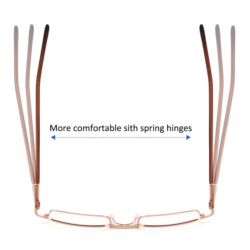 - 【Lightweight Metal Frame with Spring Hinge】The frame is made of high-quality metal material, which is lightweight and not easy to break. Sturdy spring hinges will not oppress your temples and nose.