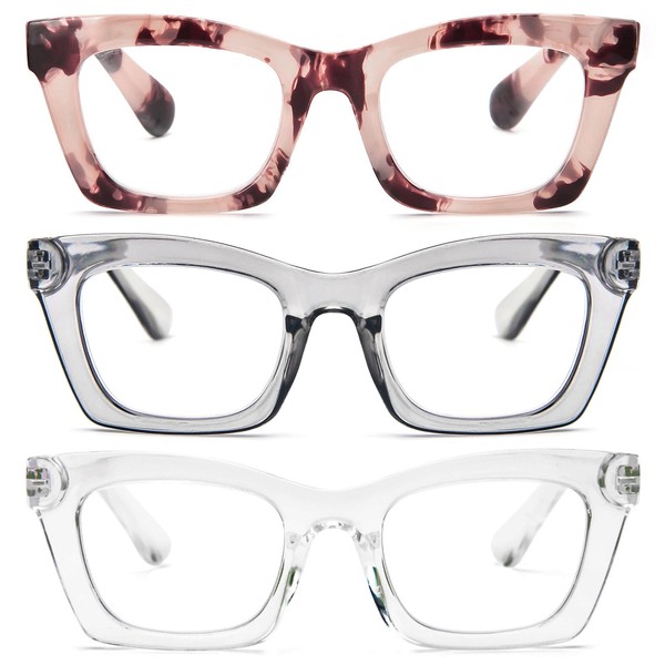 REAVEE REAVEE 3 Pack Oprah Style Reading Glasses for Women Blue Light Blocking, Oversized Cute Square Computer Readers with Spring Hinge 3.5