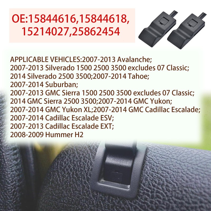 - APPLICABLE VEHICLES:2007-2013 Avalanche;2007-2013 Silverado 1500 2500 3500 excludes 07 Classic;2014 Silverado 2500 3500;2007-2014 Tahoe; 2007-2014 Suburban;2007-2013 GMC Sierra 1500 2500 3500 excludes 07 Classic;2014 GMC Sierra 2500 3500;2007-2014 GMC Yukon;2007-2014 GMC Yukon XL;2007-2014 GMC Cadillac Escalade;2007-2014 Cadillac Escalade ESV;2007-2013 Cadillac Escalade EXT;2008-2009 Hummer H2