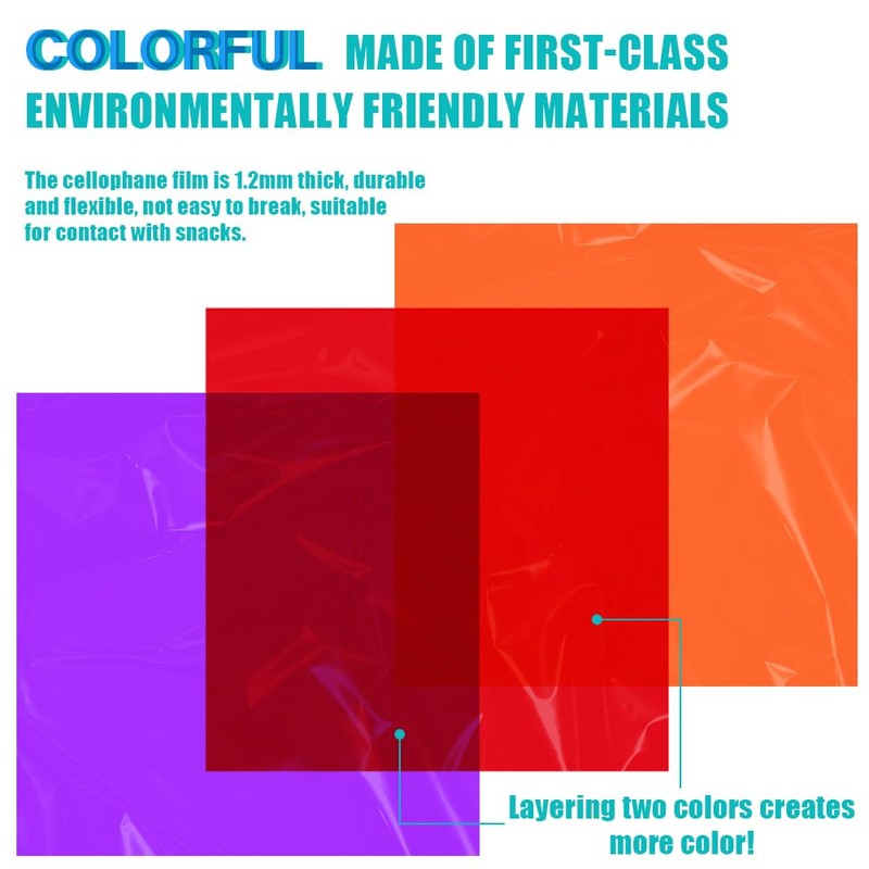 - ☀️【Easy to use】: these colorful cellophane wrap are easy to fold and trim, and you can fold them and cut them into the shape you like according to your needs. You can also combine different colours of colourful cellophane film together to get more creative colours.