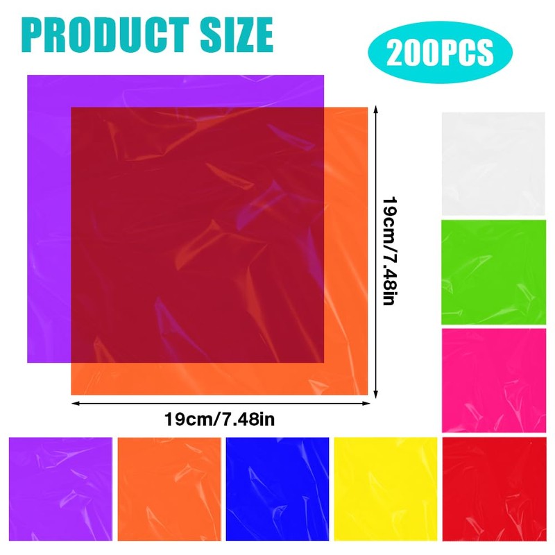 - Package contents: you will receive 200 pieces cellophane film square colourful, each 19 x 19 cm, with a total of eight colours and 25 pieces for each colour. Rich colours and sufficient quantities can meet your different DIY needs.