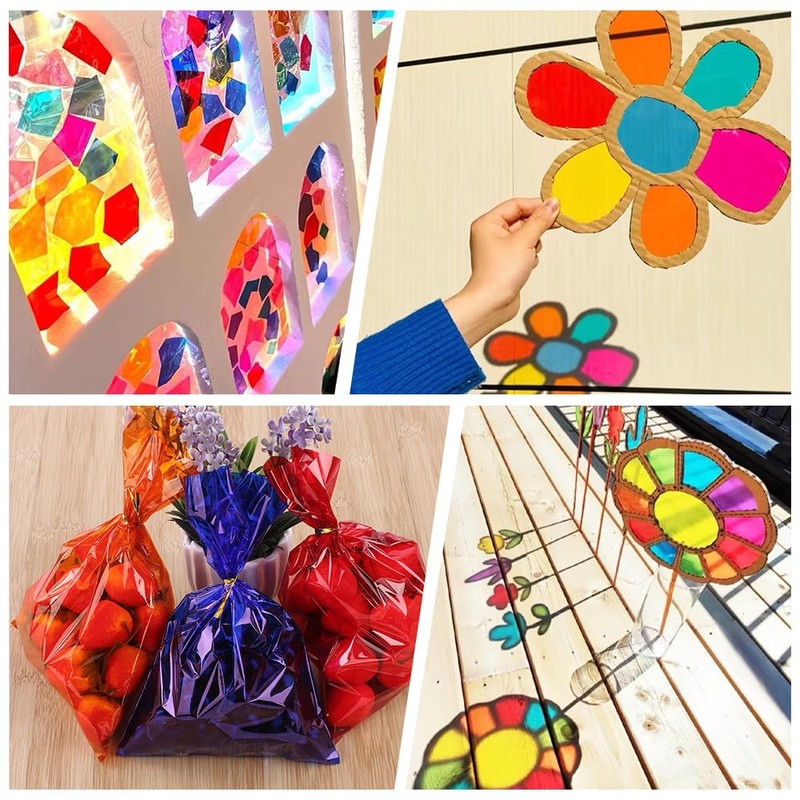 - Versatile: coloured cellophane films have many uses and is very practical, you can use it for memory albums, glass stickers, gift wrapping, food packaging, lighting, DIY arts and crafts projects, etc.