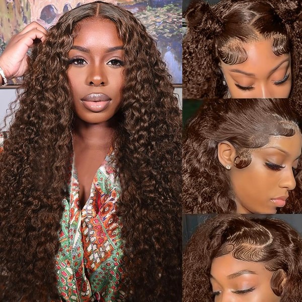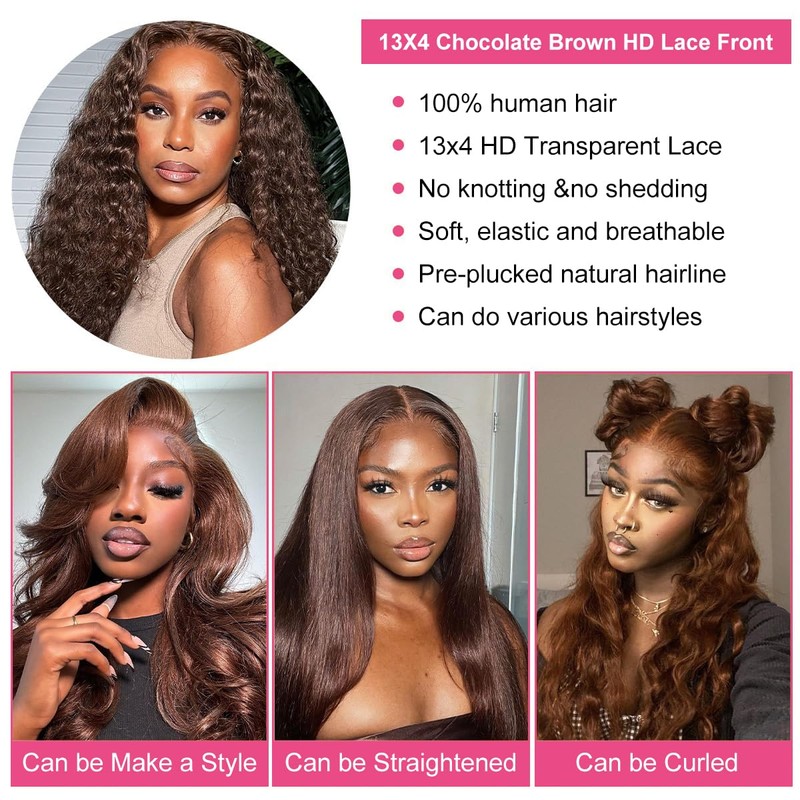 - Package includes: 1 chocolate brown colour deep wave lace front wigs + 1 high quality 3D mink eyelash + 1 stretchy wig cap