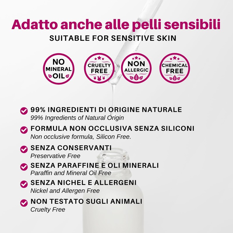 - ➡ 【Why CHOOSE IT 】: formulated with 99% naturally derived ingredients, it contains no paraffins, mineral oils, silicones or preservatives. It is odorless as it contains no fragrances. It is allergen free, tested for nickel and cruelty free. It is a product made in Italy. It has an immediate booster action on major signs of aging.