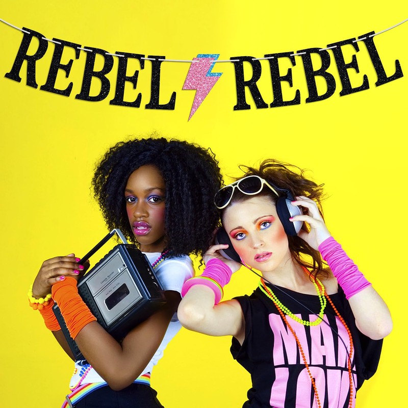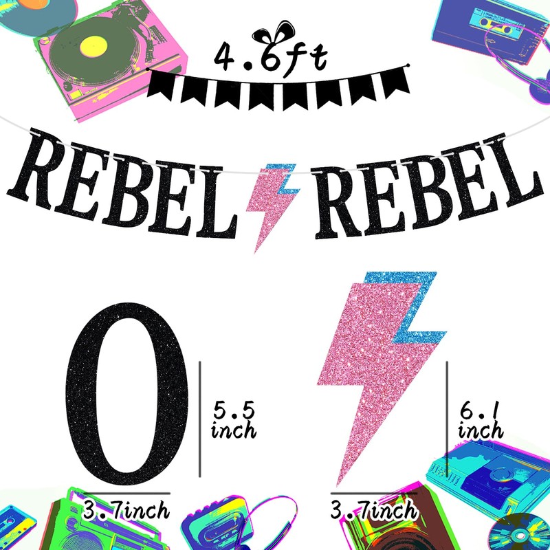REBEL REBEL Banner, decoración de pared de feliz cumpleaños, música de canción, roca, glam roca, decoración de habitación de recámara de los años 70, David Bowie, suministros de decoración de fiesta de cumpleaños/noche