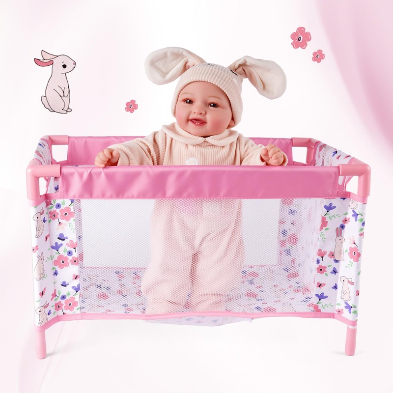 - GREAT GIFT FOR KIDS - The portable reborn baby doll bed comes in pink color with flower and bunny pattern, making it the perfect gift for kids. Recommended for ages 3 and up.