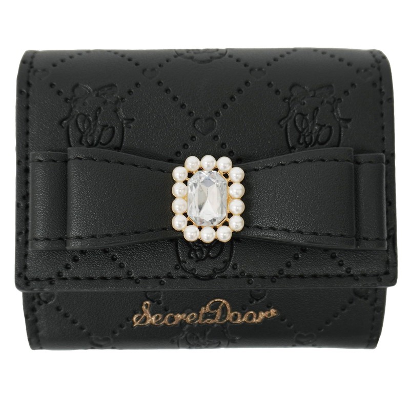 Reborn Company Trifold Wallet Compact Mini Wallet, Women's, Ribbon, Box Coin, Black