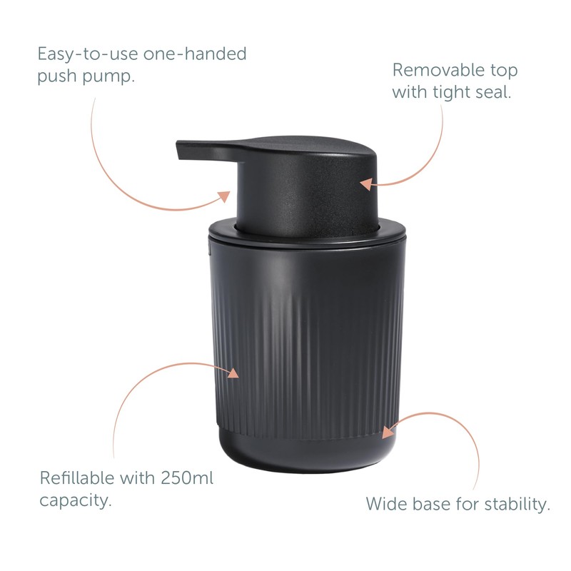 ReBorn Recycled Soap Dispenser - Bathroom Soap Pump - Easy to use One-handed Push Pump - Wide Base - Refillable with 250ml Capacity - Made in Britain from Recycled Materials (Graphite Black)