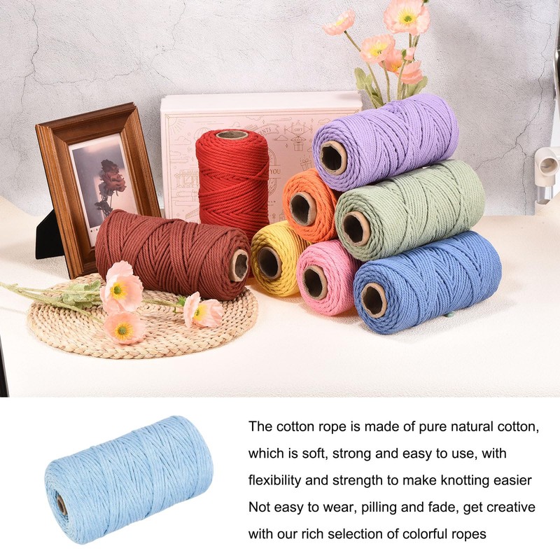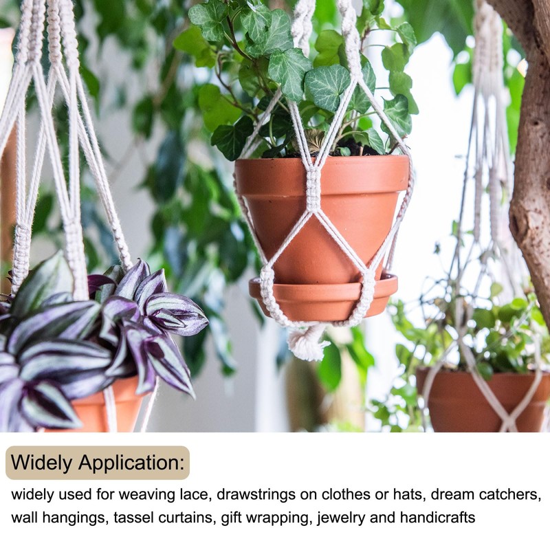 - 3-[Wide Application]: Macrame cord has a wide range of applications, such as: stringing photos together to make photo wall hangings and Have fun hand-knitting with family and friends. cotton rope can also be used for curtain cords, wall hangings, macrame plant hangers, keychains, small storage baskets, gift box packaging, clothing decoration and home decoration.