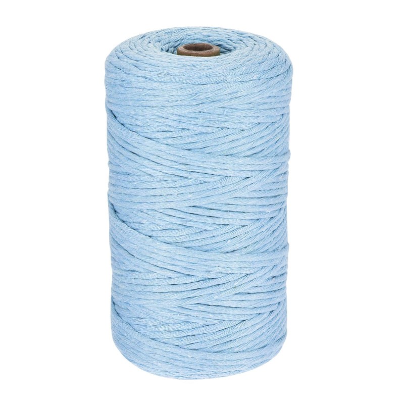 Rebower 1/8 Inch 656 Feet Macrame Cord, Cotton Cord Rope String Single Strands Twisted Braided Thick Macrame Cord [for Crafts Wall Plant Hangers] - Sky Blue