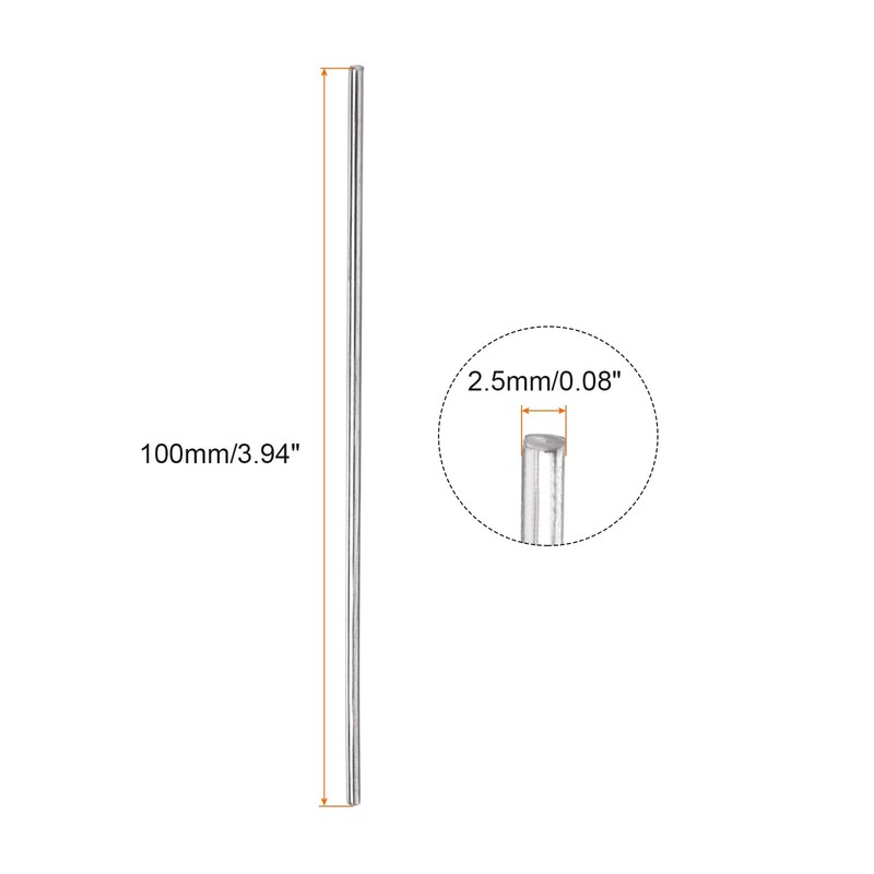 - 2-[Size]: Diameter: 2.5mm/0.1"; Length: 100mm/3.94"; In Packing: 2pcs x 304 Stainless Steel Rod.