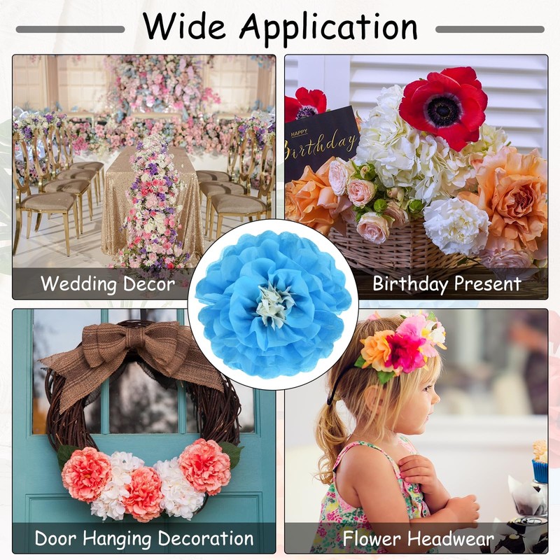 - [Good Feature]: Artificial tissue paper flowers are handcrafted decorative flowers made from tissue paper, designed to mimic the delicate beauty of real bloom. These Flowers are lightweight, soft, and flexible, making them an excellent choice for a variety of occasions, including weddings, parties, home decor, and DIY projects.