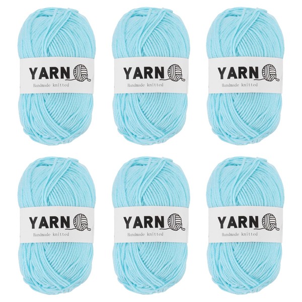 Rebower 6Pcs Sky Blue Acrylic Yarn 790 Yard 4 Ply Soft Crochet Yarns Sport We...
