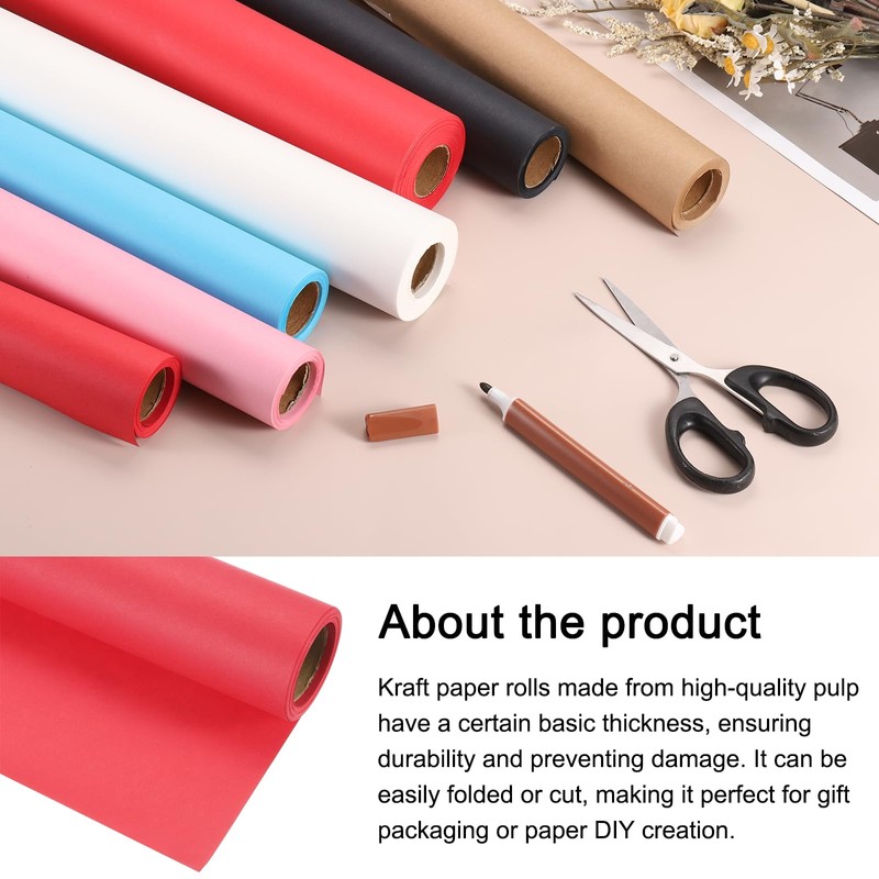 - [Good Feature]: Gift wrap paper roll is a commonly used paper packaging material that is typically easy to process, lightweight, and foldable, making it perfect for birthday/party gift packaging, bouquet packaging, and DIY art creation. Using colorful kraft paper rolls for packaging can make the gift look more textured.
