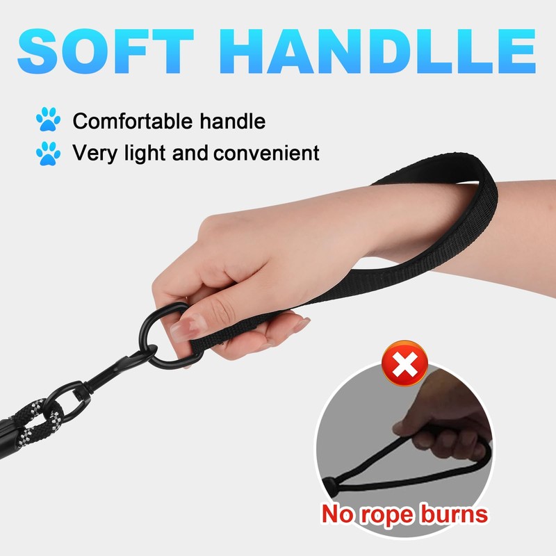 - PADDED HANDLE The handle of the recall leash for dogs is padded with neoprene to keep the leash safe during training, playing or when your puppy is too excited and pulling, without cutting or squeezing your fingers.