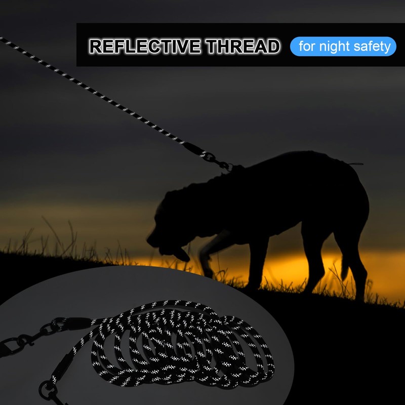- REFLECTIVE AT NIGHT: The reflective stitching of the long outdoor dog leash ensures that your dog is clearly visible in different terrain and in low light conditions.