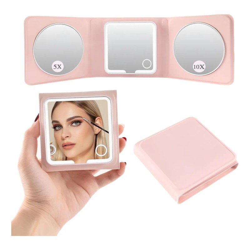 Recargable Espejo De Maquillaje Luz Tríptica Aumento 5x/10x