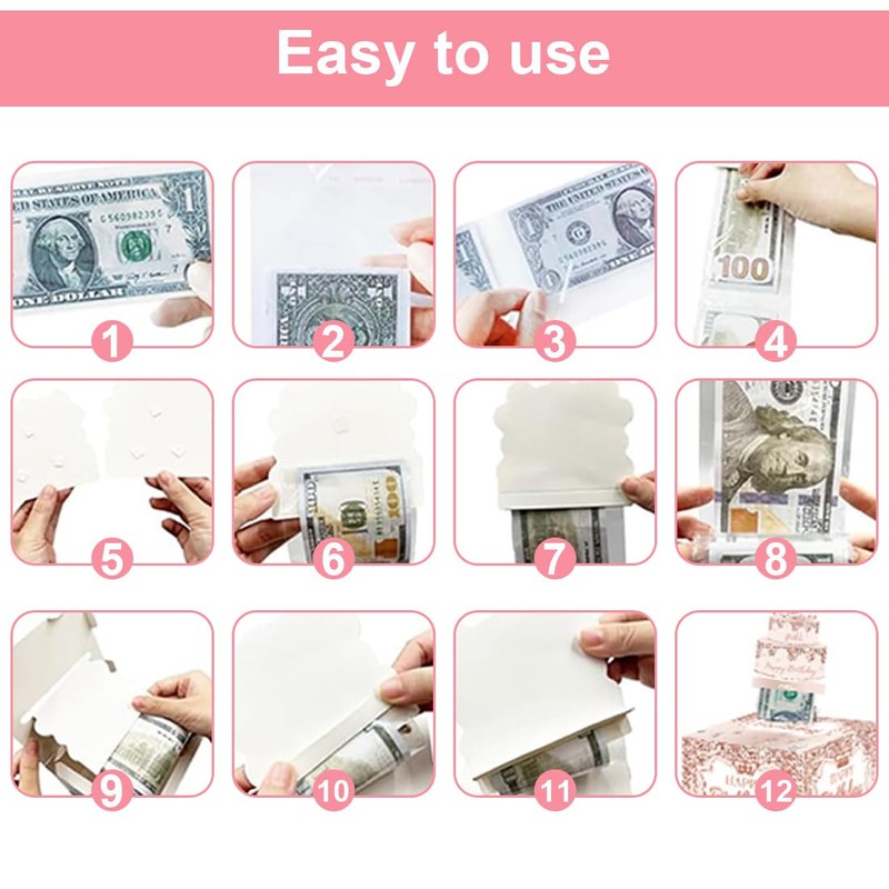 - Easy to assemble: the birthday gift box is simple and easy to assemble. All you need to do is put the money in the clear bags provided, and then stick all the bags together with the money with the clear tape provided. Put the box together and put the card in the box.