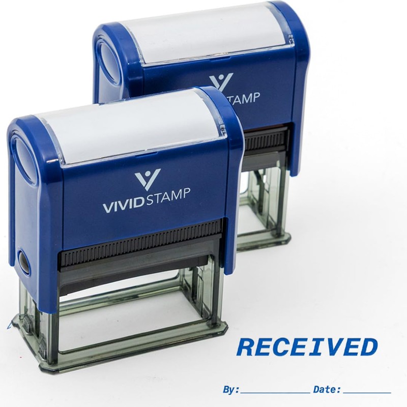 Received by Date Self Inking Rubber Stamp (Blue Ink) Medium (2 Pack)