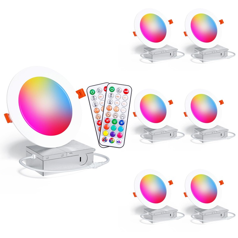 - 【RGB & 3 Modes】LED recessed lights has 12 static light colors and 3 dynamic modes to choose from, you can choose your favorite light color to add ambiance to your life, and of course it's perfect for home decorations for holiday parties. It is suitable for installation and use in different places, such as homes, hotels, cafes, restaurants, bars, game rooms, etc