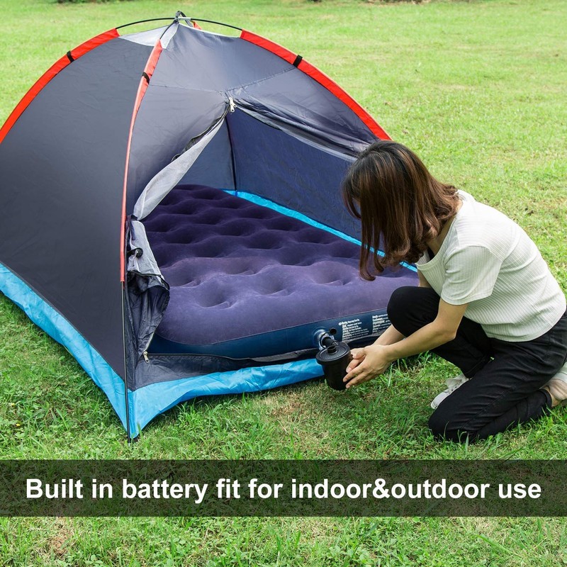 - ♦ SMALL, LIGHTWEIGHT & PORTABLE -- The air mattress pump is designed to be small and lightweight, which makes it small enough to fit in a backpack, suitcase or a tool kit. This inflatable tool, without a doubt ,make it easy for you to carry around for both indoor and outdoor use.