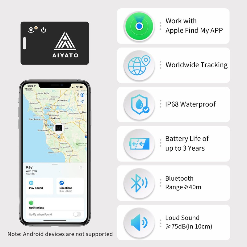 - 【4】Bluetooth 5.0 ensures that the card has plenty of connectivity range with your phone, and the Find My APP allows you to directly manipulate the card to play sounds and help you find your lost things.