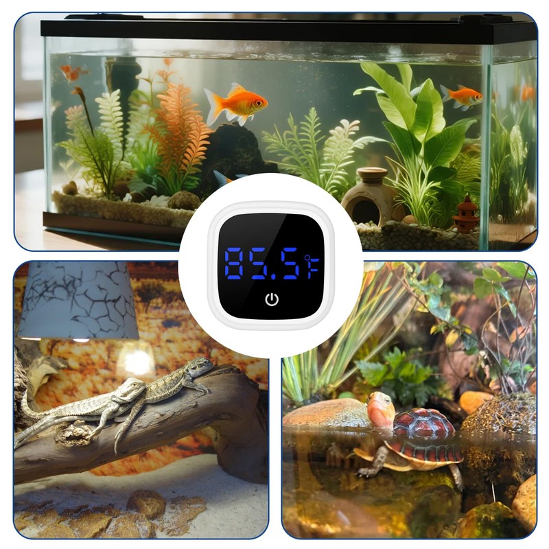 - Fast-Charging: The tank thermometer aquarium built-in rechargeable battery with a length of 59 inches USB charging cable, 15-minute fast charging, no need to change batteries. The water thermometer is equipped with a touch power button that lets us wake it up easily with a tap, witch will automatically enter sleep mode after 30s. Environmental protection and energy saving.