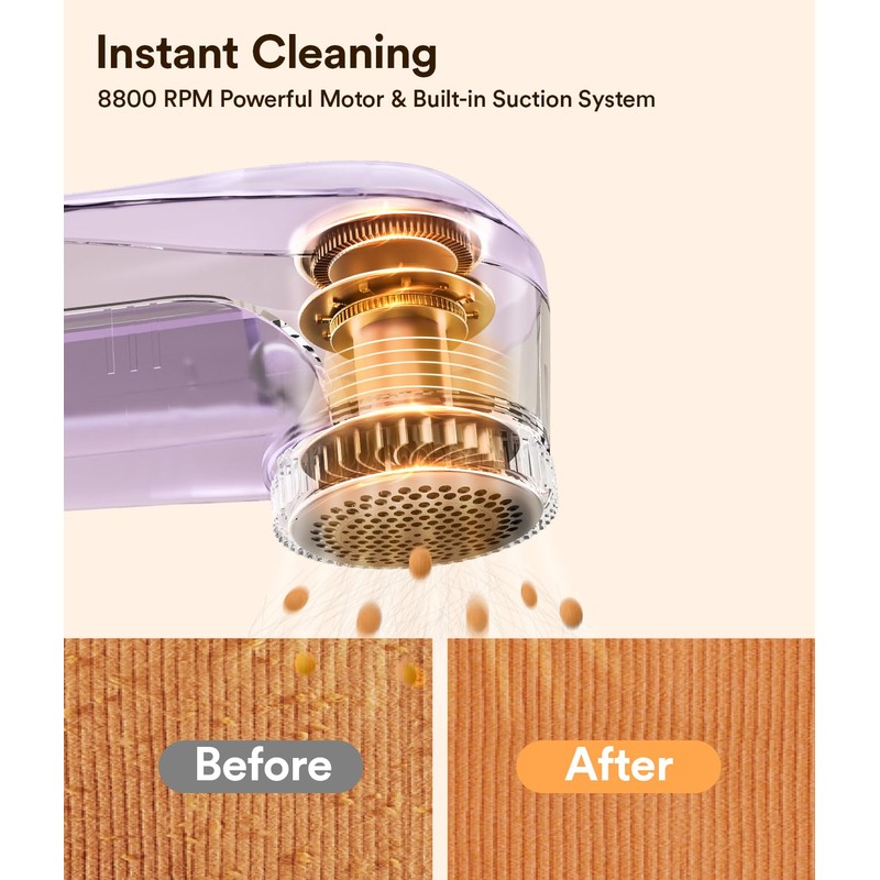• 【Durable Lint Shaver】Yomeie sweater shaver has a built-in suction system and a powerful motor speed of 8800rpm, which will not block the blades and cleaning channels. The lint shaver is equipped with a large lint container, allowing you to quickly clean a large amount of clothing or sofa furniture at one time.