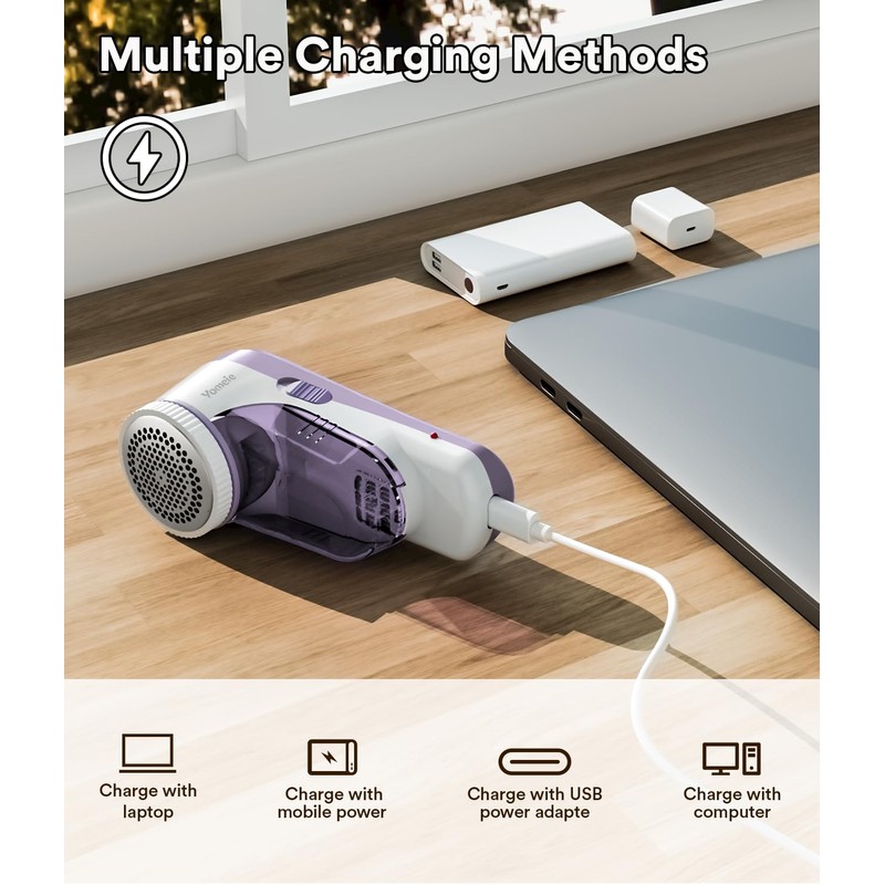 • 【Multiple Charging Methods】The clothes shaver supports a variety of charging methods, and 5V dc USB charging is compatible with power adapters.The depiller pill remover can be directly plugged into laptops/desktops, mobile power supplies, and car chargers for charging.