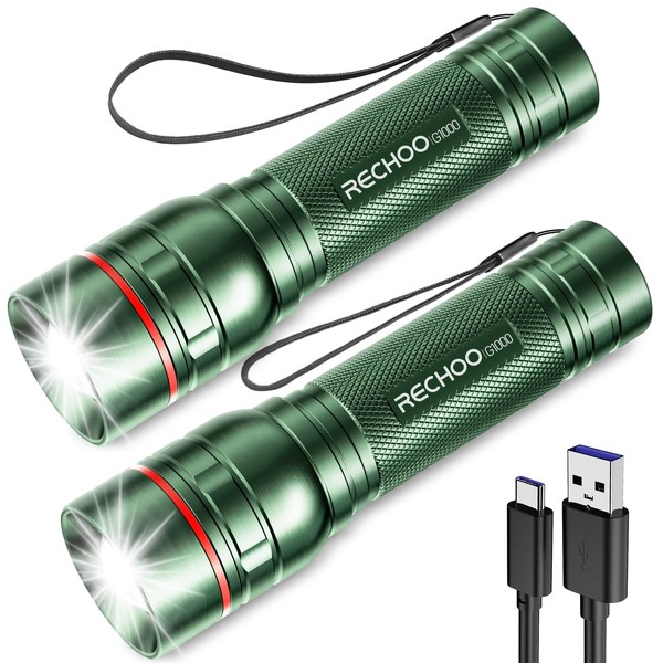 - Powerful Rechargeable Flashlights: RECHOO G1000 flashlights high lumens with an upgraded LED chip and tactical switch design, offer 3 lighting modes (high, medium, strobe) which are ideal for daily use or emergencies; No need to cycle through modes too many times to switch modes; The all-in-one design of the flash light also eliminates the hassle of frequent battery replacements; Plus, easily zoom from a wide to a narrow beam by pulling out the flashlight head; Illuminate anywhere with ease;