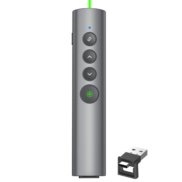 Rechargeable Green Laser Pointer for Presentation, Clicker for PowerPoint Presentations, USB-C/A Power Point Clicker, Wireless Presenter Remote for Computer/Mac/PPT/Google Slide Advancer
