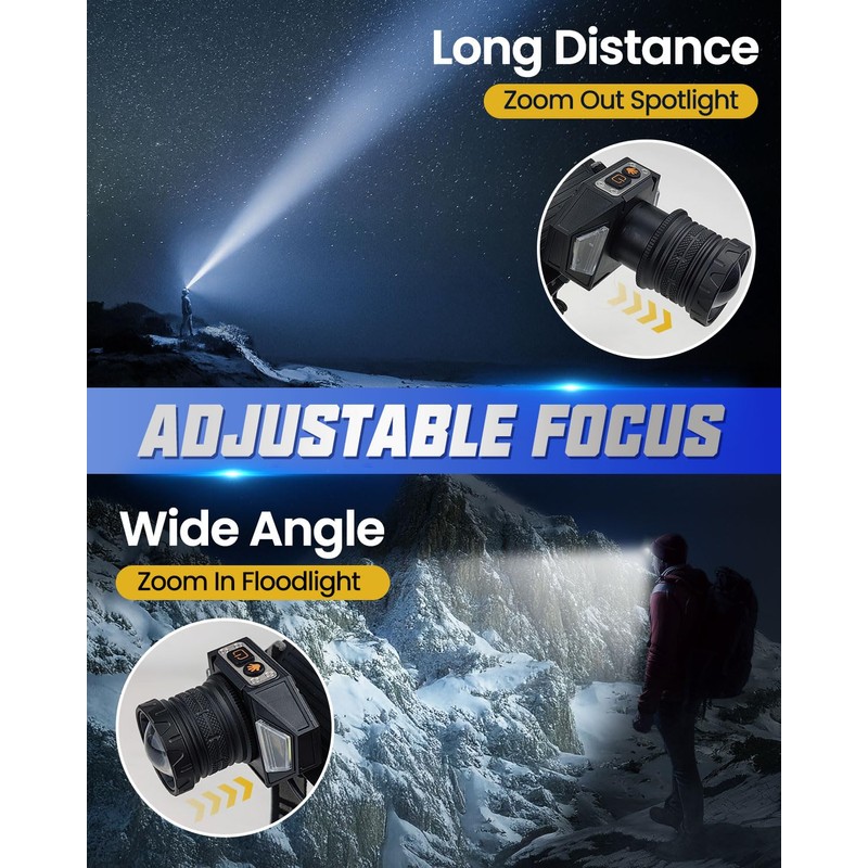 Rechargeable Headlamp, LED Zoomable Headlamp with Motion Sensor, 9000 High Lumen Dual Light Source Sensor Headlamp with 8 Modes& IPX5 Level Waterproof, 90° Adjustable Head Flashlight for Adult Outdoor