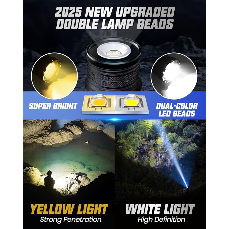 - 【Dual Light Source Beads】 Brighten every adventure with this powerful headlamp! Featuring white and red LEDs, it ensures clear visibility with white light and enhanced underwater clarity with yellow light. With 9000 lumens of tested brightness, it’s the perfect tool for your next outdoor journey.
