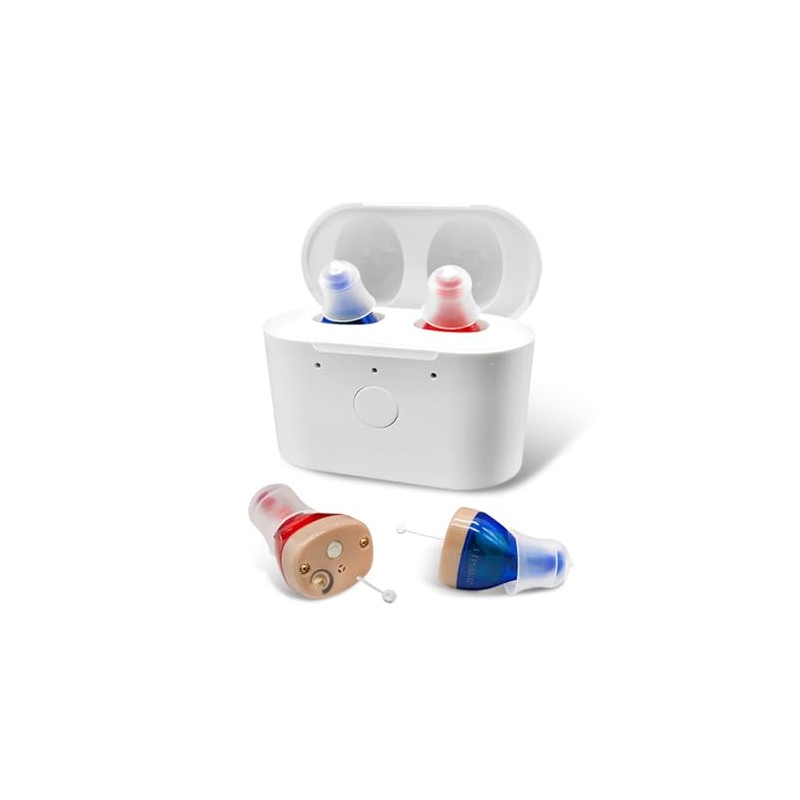 Rechargeable Hearing Aids for Seniors Adults with Noise Reduction,Discreet Fit for All-Day Comfort,Hearing Aids for Men and Woman,Mini Invisible Aid In-the-Ear,Blue and Red Pair (Analog signal model)